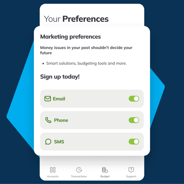 Sign up to receive updates on tools, budgeting support, and upcoming products and services that could help you meet your needs and goals.